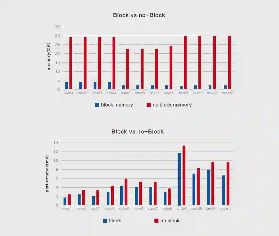 为验证分块操作的有效性,MegEngine 开展了相关对比实验,在进行单层卷积计算时,给出了采用 MegEngine Im2col 分块操作前后的内存/性能数据的对比,其中内存占用节省了数十倍,计算性能也显著提升:
