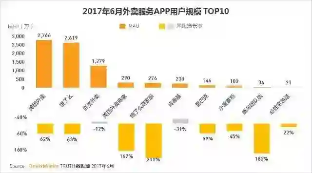 根据 QuestMobile 发布的数据,美团外卖在今年 6 月份的独立 APP 数据超过饿了么,用户规模成为行业第一,MAU 达到 2766 万。美团外卖还有部分用户在美团 APP 和大众点评 APP 上,其生态用户规模会更大。尽管目前美团外卖还在和饿了么这样的强大竞争对手博弈,甚至陷入了所谓的「囚徒困境」,但是其市场地位已经很难去撼动了。