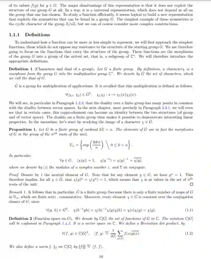 本文叙述是非常详细的。读者可能偶尔需要一些关于有限组的高级概念,以及对组行为的熟悉程度。我强调了那些重要的定义和符号。例如,从多个角度(交换群、信号处理、非交换群)研究卷积的概念,每次都要放在它的背景知识中。因此,不同的段落,虽然遵循一个逻辑递进,有一个真正的统一,但可以根据自己需要选取阅读。