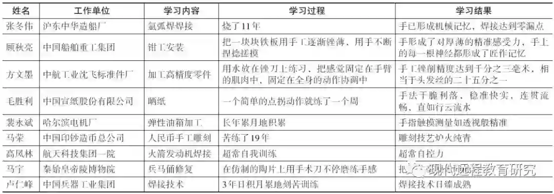 表1 部分大国工匠累积学习情况
