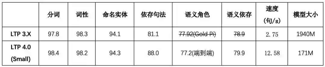 备注:速度数据在人民日报命名实体测试数据上获得,速度计算方式均为所有任务顺序执行的结果。另外,语义角色标注与语义依存新旧版采用的语料不相同,因此无法直接比较(新版语义依存使用SemEval 2016语料,语义角色标注使用CTB语料)。