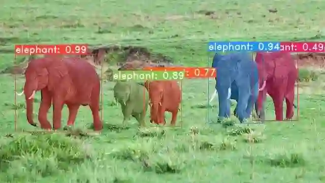 这篇论文的主要贡献一是在 MS COCO 数据集上做出了第一个实时的实例分割模型;二是对模型的各种表现进行了评估;此外还提出了比 NMS 算法更快的 Fast NMS;最后是将代码开源了,源代码 https://github.com/dbolya/yolact 。其效果样例图如下: