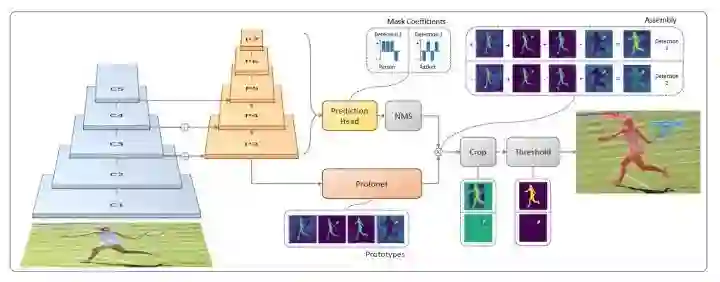 Prediction Head 分支生成各候选框的类别 confidence、anchor 的 location 和 prototype mask 的 coefficient;