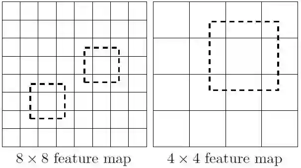 8*8 的特征图相当于将原图分为 64 份,这样每个 anchor 比较小,而 4*4 的则相反。