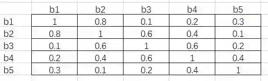 接下来将这个矩阵的下三角和对角线元素删去,得到下面的结果: