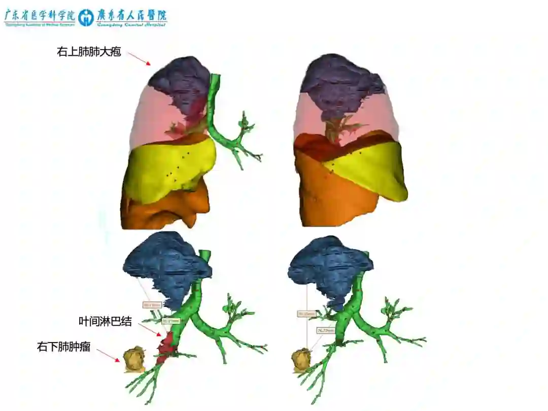 2)2019-01-10行VATS右中下肺叶切除术+右上肺肺大疱切除+系统纵隔淋巴结清扫术。