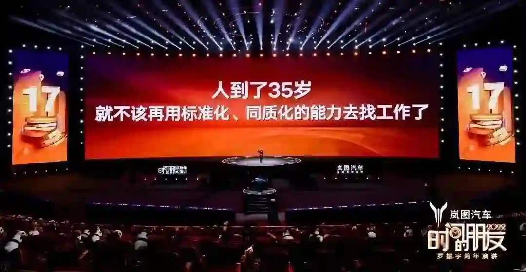 整场演讲下来,罗胖一共讲了53个故事,其中3个故事围绕“35岁职场危机”,引发了很多人的讨论。