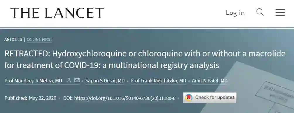 撤稿经过:文中称其数据来自一家从未听说过的,名为 Surgisphere 的数据分析公司,他们提供的数据具体细节似乎令人难以置信。且在临床上,患者服用羟氯喹的安全性一向可控。于是国际医学界开始质疑该论文“数据掺水”。而后,《柳叶刀》聘请独立调查小组交涉该神秘公司,但该公司以签署保密协议为由,拒绝交出临床数据信息来源和数据库原始资料。