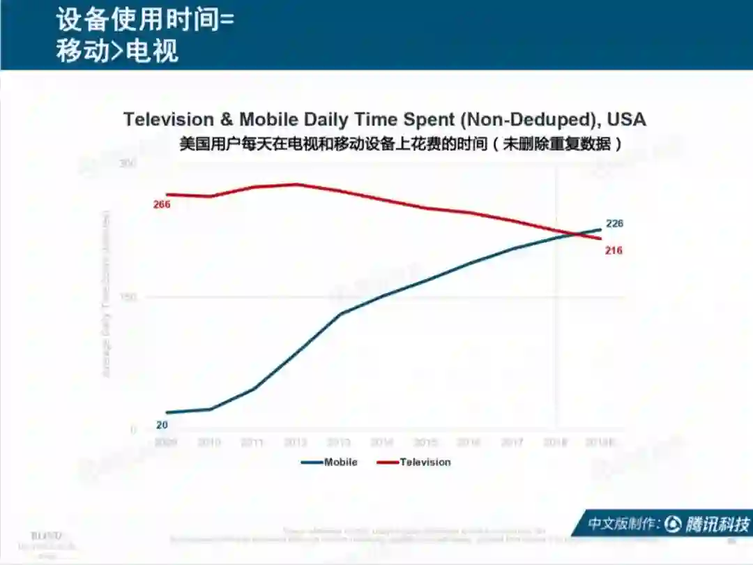 真的很惊讶,美国人移动端的时间现在才超过了电视端。而回到国内,也许数据方面移动设备仍不占优,但从我们身边草根调研来看,电视如今就只有一个功效:和沙发一起,催眠助眠。