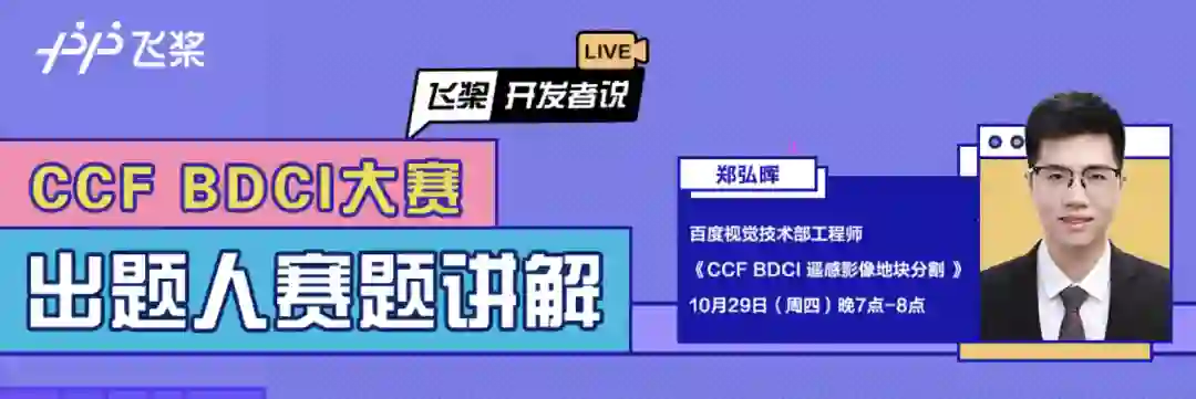 为了能够让更多开发者深入理解赛题,并从比赛中学习到产业实践中最前沿的深度学习技术,10月29日晚20:00,来自百度视觉技术团队的工程师将在飞桨直播间为参赛选手直播讲解赛题,从赛题的实际应用场景、基线模型搭建思路等角度详细解答你的困惑。