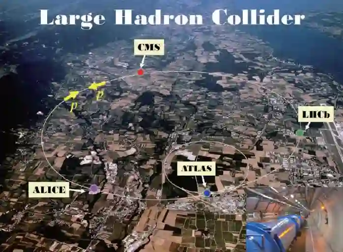 图2 大型强子对撞机及其上的4个大型实验