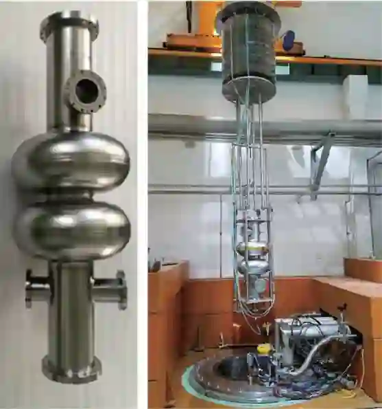 图9 CEPC 主环上的、650 MHz超导高频腔样机及其垂直测试[12]