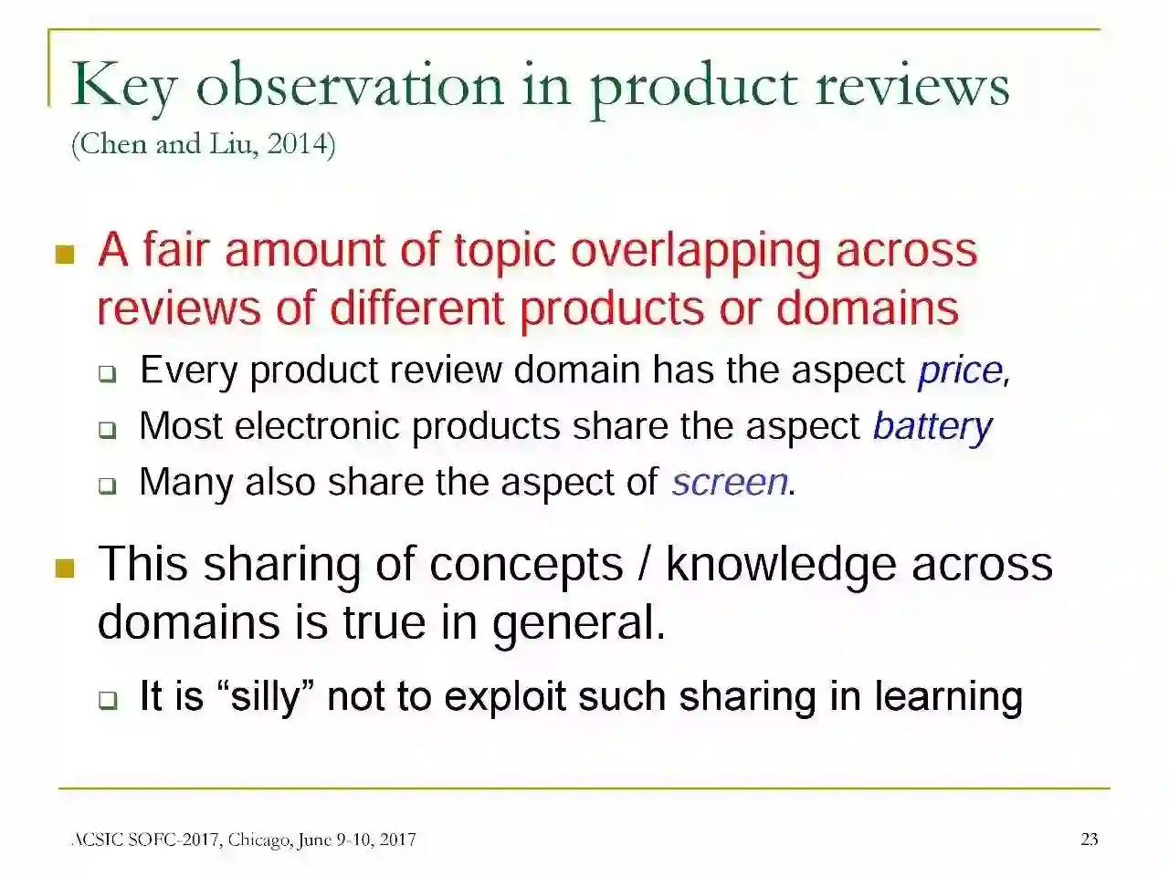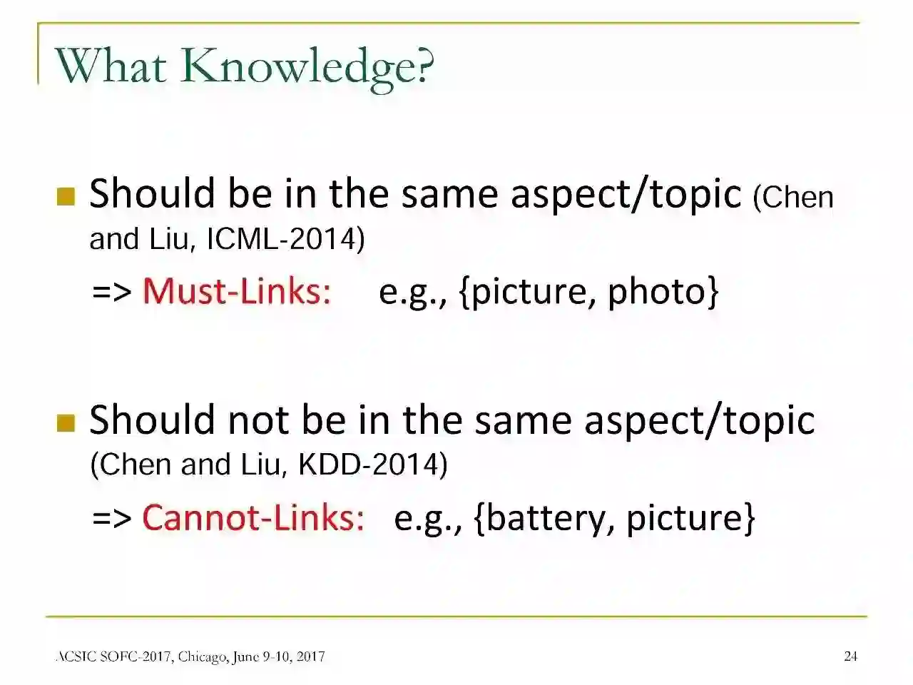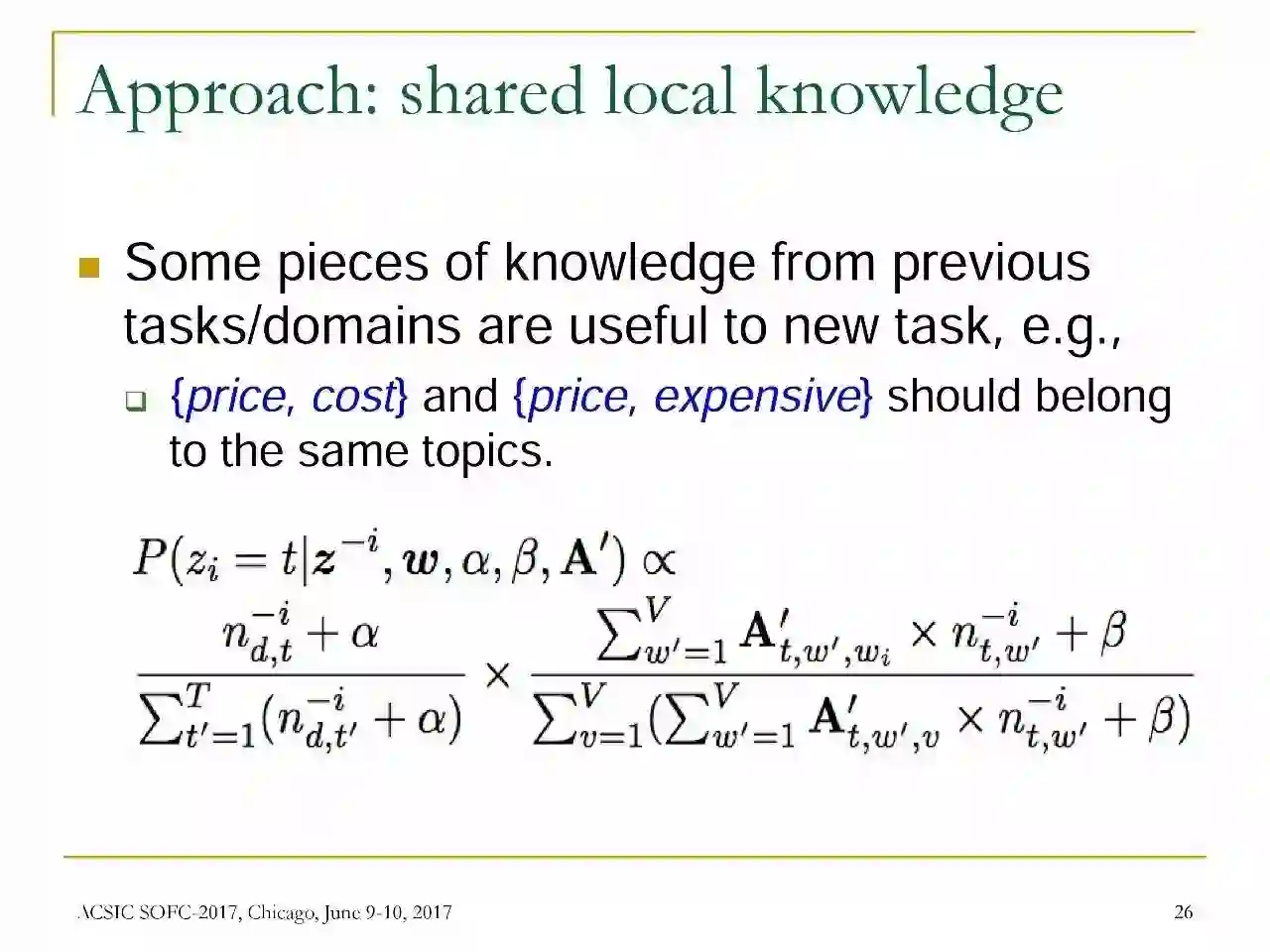 来自先前任务/领域的一些知识可用于新任务,例如,{price,cost}和{price,expensive}应属于同一主题。