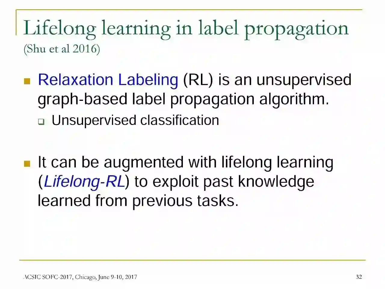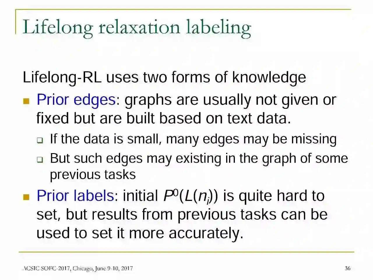 松弛标记法(RelaxationLabeling, RL)是一种无监督的基于图的标签传播算法,它可以通过终身学习进行扩展(Lifelong-RL),以利用在以前的任务中学到的知识。