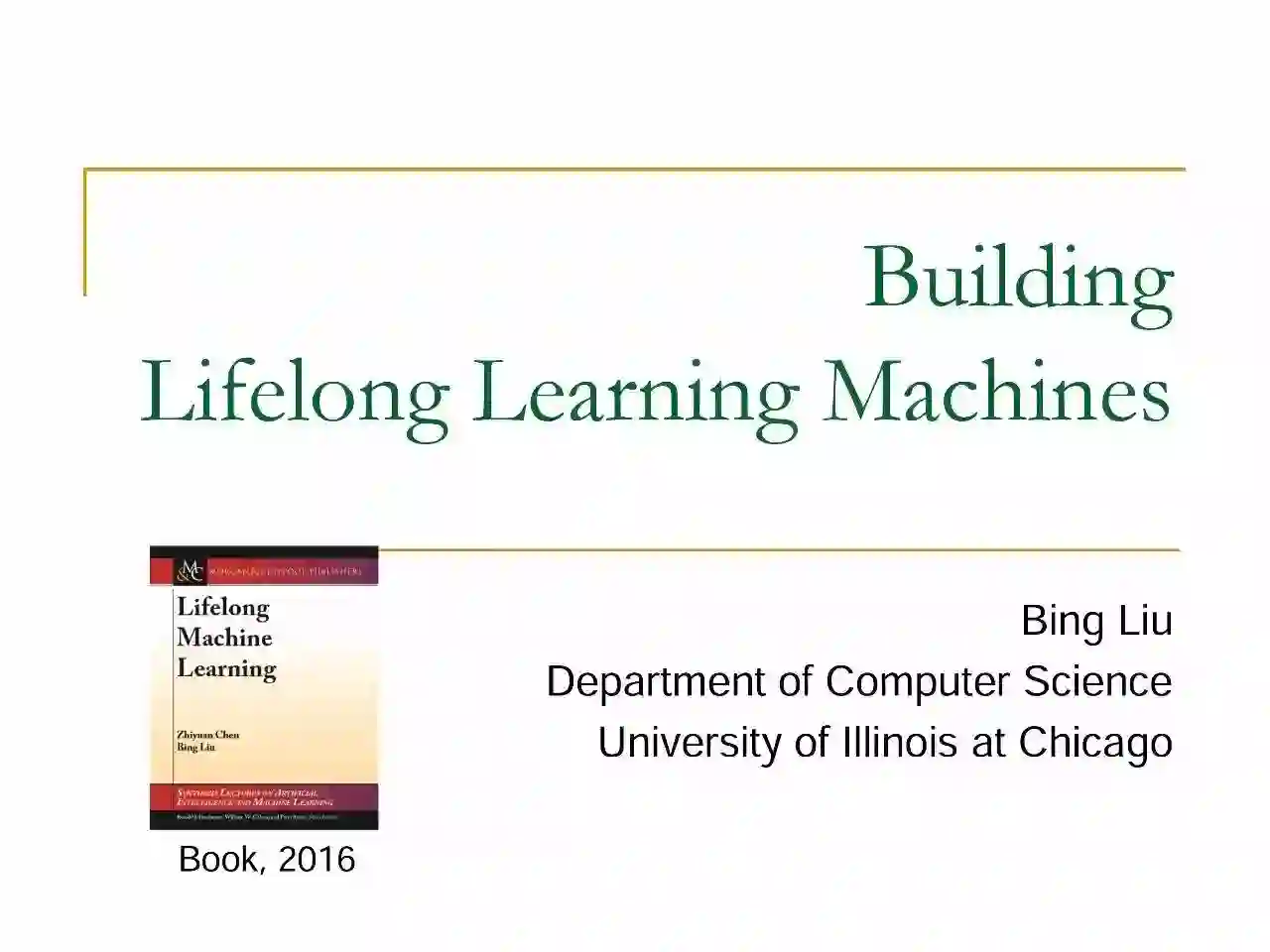 其中,伊利诺伊大学芝加哥分校的刘兵教授,演讲题目为《打造终身学习的机器》,涉及“终身机器学习”(Lifelong Machine Learning,LML)的概念与机器学习密切相关。