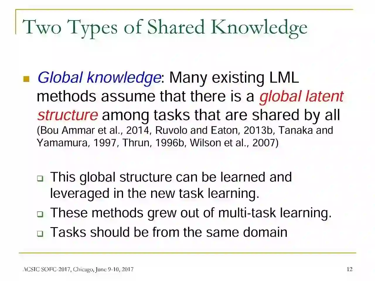 全局知识(Global knowledge):许多现有的LML方法假设在共享的任务中存在一个全局的潜在结构(global latent structure)。