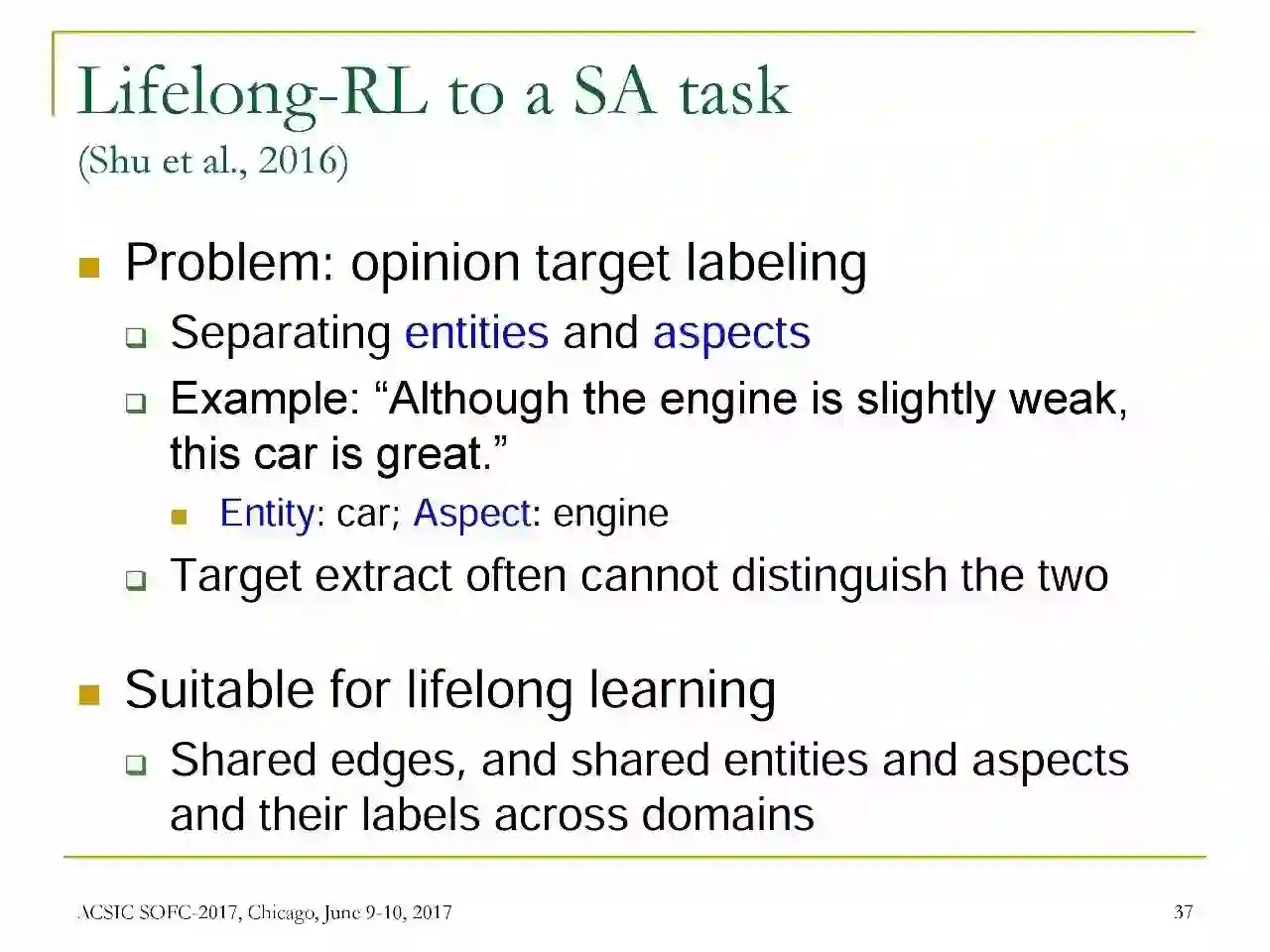 这个问题适合使用终身学习的方法:共享edge,entity和aspect,以及共享他们跨领域的label。