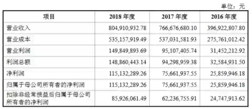 华文食品的招股书显示,2016年至2018年,华文食品营收分别为3.97亿元、7.67亿元、8.05亿元;归属于母公司所有者的净利润分别为2586万元、7566.19万元、1.15亿元;主营业务毛利率分别为30.19%、29.61%、33.12%。