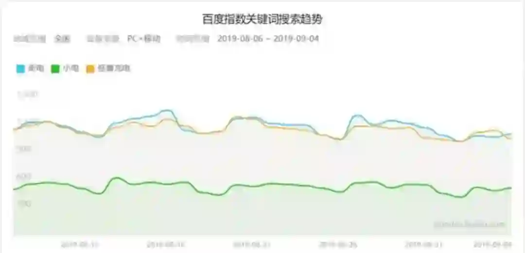 街电、小电、怪兽充电近一个月百度指数对比