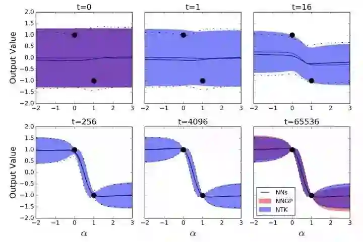 在此限制下,网络初始化时的输出取自高斯过程 (GP);此外,在使用平方损失进行较精确贝叶斯训练后,网络输出仍然由 GP 控制。除了理论上的简单性,nfinite-width 这一限制也具有实际意义,因为许多研究已经证明,更宽的网络可以更好地进行泛化。