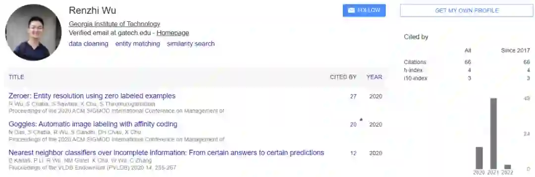 Renzhi Wu 是佐治亚理工学院计算机科学博士生,其导师为 Xu Chu 教授。他的研究重点是使用机器学习来解决具有挑战性的数据管理问题,例如实体匹配、基数估计和真值推理。在就读佐治亚理工学院之前,他在清华大学获得了学士和硕士学位。