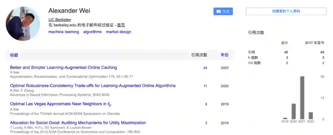 Alexander Wei 是加州大学伯克利分校计算机科学的博士生,受 Nika hagtalab、Michael i. Jordan 和 Jacob Steinhardt 的指导。兴趣主要集中在算法、经济学和机器学习的交叉研究,特别是对于在复杂环境中开发学习、决策和合作的原则。他的工作已经得到了 SODA 最佳学生论文奖和 INFORMS Auctions & Market Design Rothkopf 奖 (第三名) 的认可。在来到伯克利之前,他在哈佛大学获得了计算机科学和数学的学士学位和计算机科学的硕士学位。