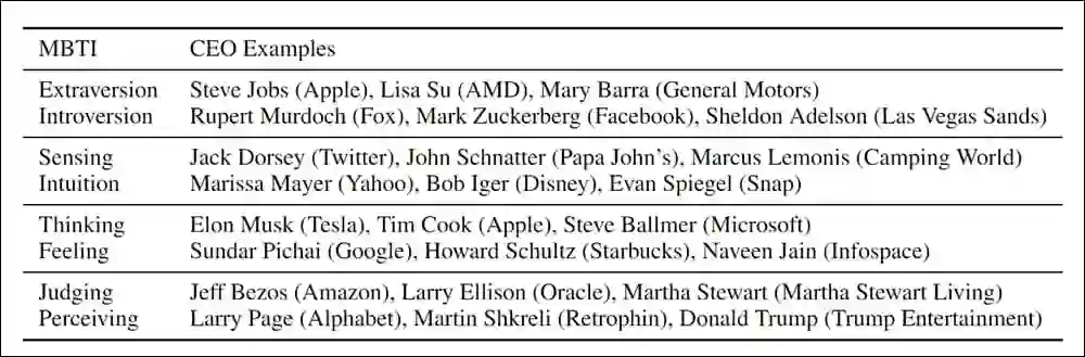 近日,德国和意大利的联合研究采用了一种新方法来制定这种性质的预测框架,通过使用公开数据将 32 位大企业 CEO 的言论映射到 Myers-Brigg 类型指标框架 ( MBTI )上。