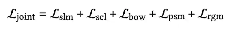 最终,我们采用多任务学习的方式联合训练以上五个预训练目标,最终的损失函数定义如下: