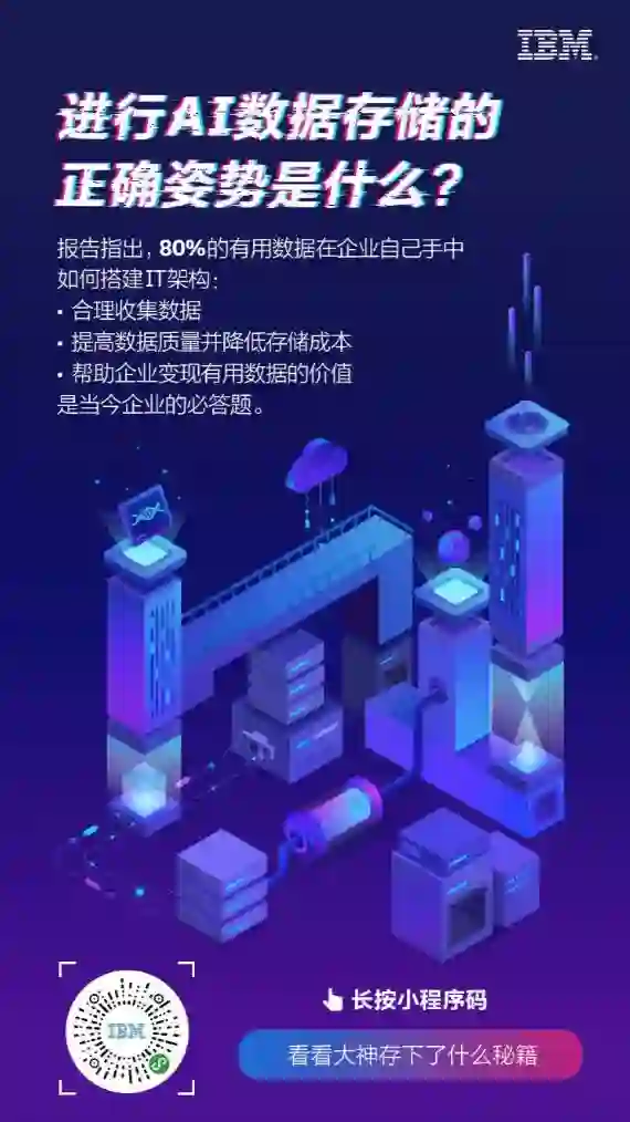 识别海报内小程序码,进入IBM存储视界,从中可以了解到在大数据、AI、云计算等等技术变革之下,数据应用以及 IT 架构打造的专业观点。
