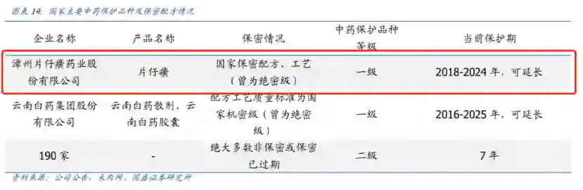 (片仔癀和云南白药是目前仅有的 2 个还在保护期的一级中药保护品种)