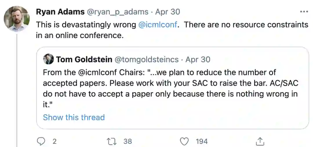 一位普林斯顿大学机器学习领域的计算机教授 Ryan Adams 透露组委会给到 SACs 的信息: