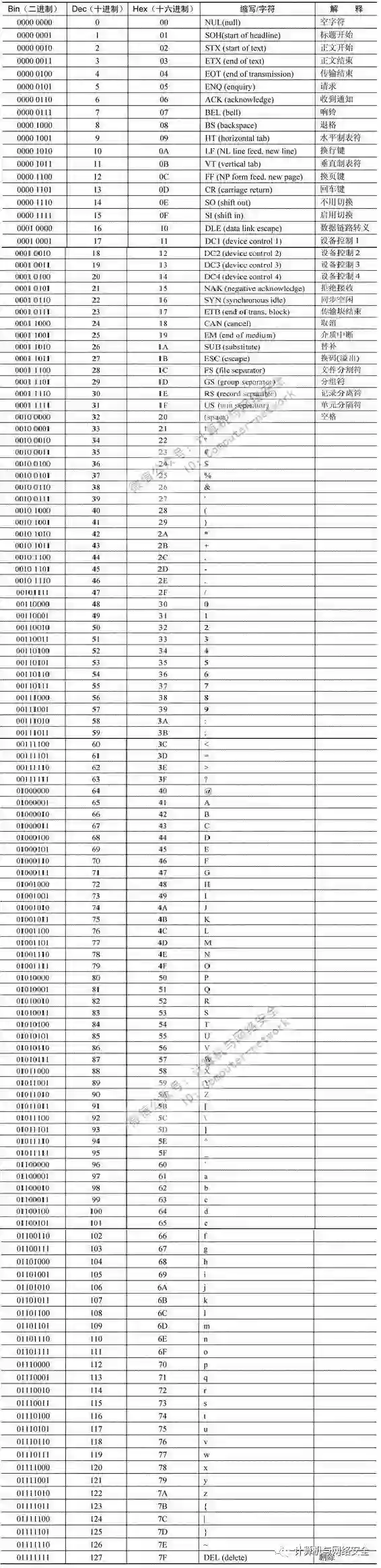 在解密WEP模式的包时,需要输入十六进制的ASCII码值。这里将列出一个标准的ASCII码值表,如表1所示。