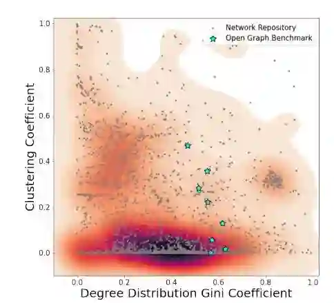 首先,图数据的benchmark大多分布相似,因此,训练出来的图网络大概率是只能针对某种数据的网络。而现实中的图网络又不一定符合benchmark里面的样子,所以直接导致在benchmark里能顺利训练出来的图结构不一定能符合真实场景。这里做了一个简单统计:
