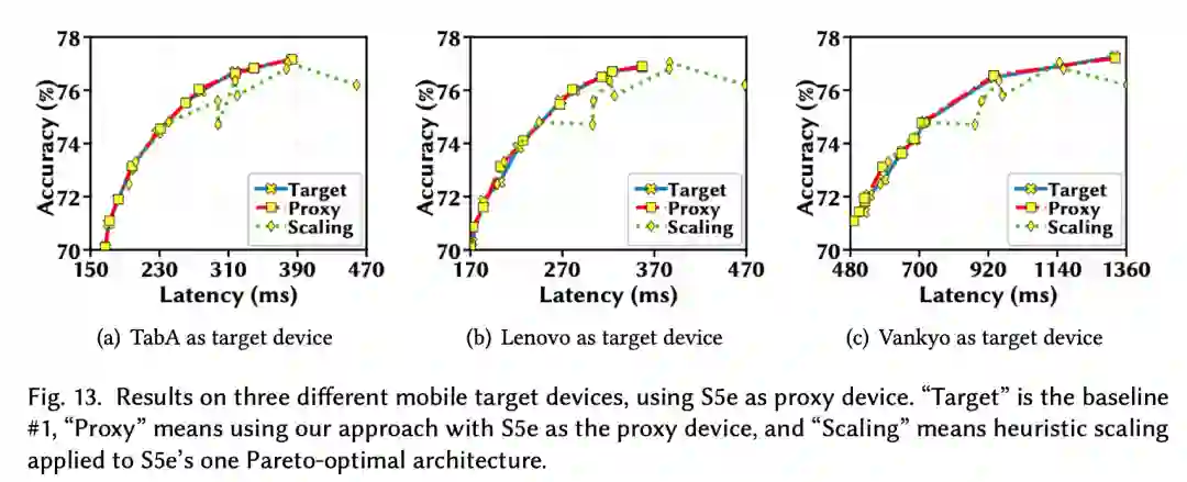 通过前一个章节可以知道不同硬件上架构的延迟排名可能有很强的相关性,既然代理硬件上延迟低精度高的架构可能在其他硬件上也延迟低精度高。那么能不能直接复用一个代理硬件上的Pareto最优架构给所有硬件呢?