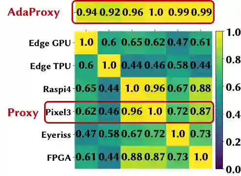 对于跨平台的设备,由于硬件结构通常显著不同,延迟排名的相关性自然而然会低于同平台的设备间。作者在HW-NAS-Bench开源数据集上的实验也证明了此结论(详情见原文附录)。
