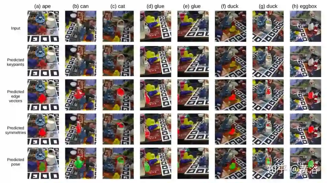 而下图展示的是有旋转对称轴目标的姿态估计: