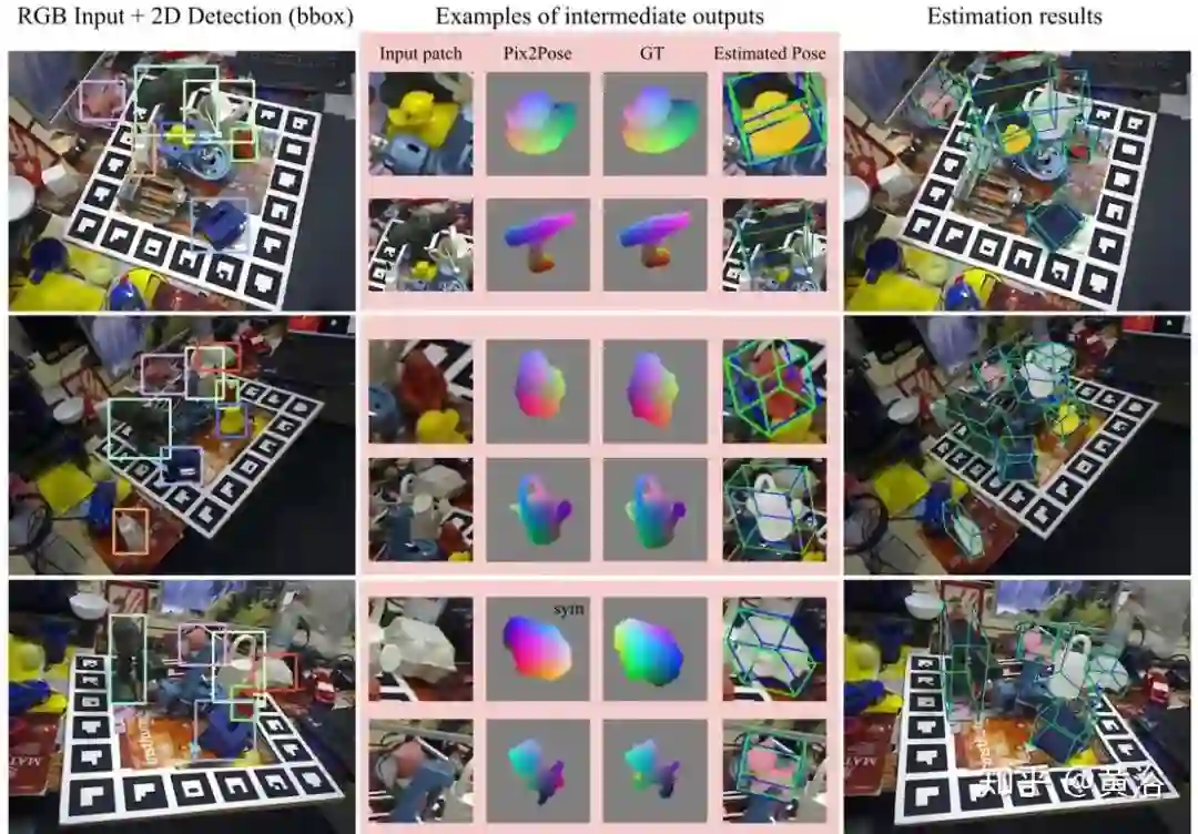 其步骤如图所示,给定输入图像,先放大目标,然后解开旋转和平移以进行估计。具体而言,旋转是通过PnP从预测的3D坐标中解决的,而平移则直接从图像中估算出来。
