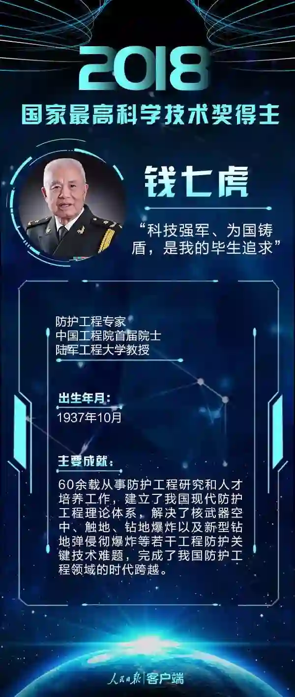著名防护工程专家、中国工程院院士钱七虎是中国现代防护工程理论奠基人,创建了中国防护工程学科和人才培养体系,他以科技强军、铸盾报国为毕生追求,对中国防护工程各个时期的建设发展做出突出贡献,为中国铸就坚不可摧的“地下钢铁长城”立下不朽功勋。