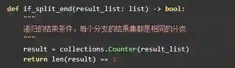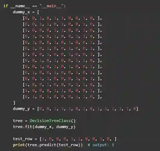 本章将构造出完整的决策树,所以递归的停止条件是所有待分析的训练集都属于同一类: