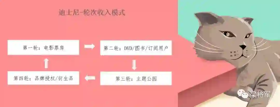 必须要强调的是:迪士尼的“轮次收入模式”是有先后顺序的,必须先有爆款内容,以超级内容为引擎,才有后续的三个变现行为。也就是我们之前提到的——IP是先有内容,才有产业。