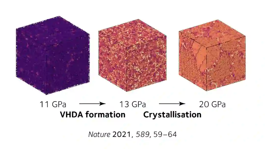 非晶硅又称无定形硅,是单质硅的一种形态,其不具有完整的金刚石晶胞,熔点、密度和硬度也明显低于晶体硅。这种介于固体和液体之间、无固定形式的过渡物质很难研究,而现在机器学习提供了对压力诱导的非晶硅变化的全新见解。