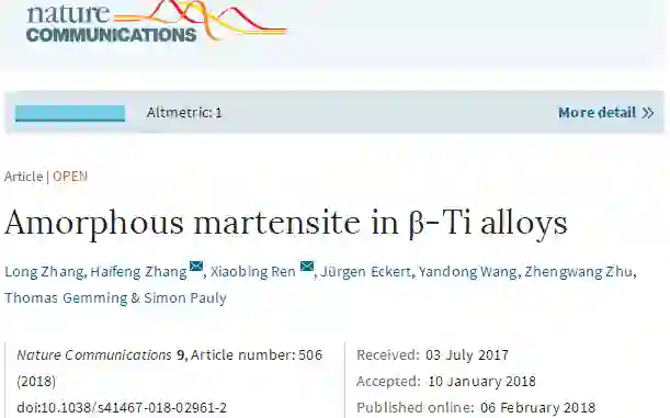 近日,中国科学院金属研究所沈阳材料科学国家(联合)实验室非平衡金属材料研究部研究员张海峰团队,与西安交通大学、北京科技大学、德国Leibniz固体材料所以及奥地利科学院Erich Schmid材料所科研人员合作,发现了一种新的固态非晶化机制——马氏体相变致非晶化机制。