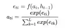 如上所属,attention的值不仅与annotation vector 有关,还与上一时刻解码器的隐状态有关。因此有: