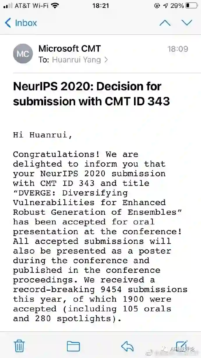 NeurIPS是学术界和业界都广为认可的人工智能顶级会议,本次NeurIPS 2020接收到了破历史纪录的9454篇论文,而只有1900篇论文通过评审,其中包括280篇Spotlight以及105篇Oral,Oral等级论文比例仅为1.1%。