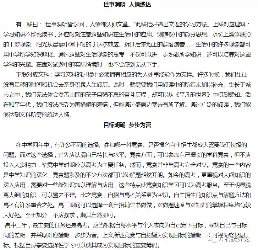 “这肯定不能说轻松,不过就我个人而言压力也不是很大,而且全班都在按照同一个节奏学习,也不会有很快的感觉;虽然全班默认按理科学习,但是文科课程的初中和高一必修部分也都会学,我们只是压缩了时间,初高中所有的知识都是学了的。”