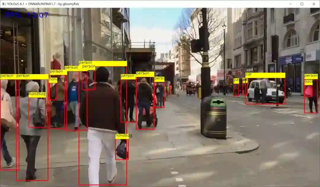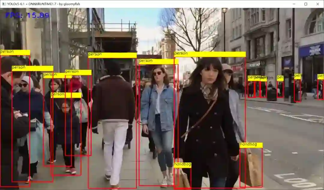 cv::imshow("YOLOv5-6.1 + ONNXRUNTIME1.7 - by gloomyfish", frame);
