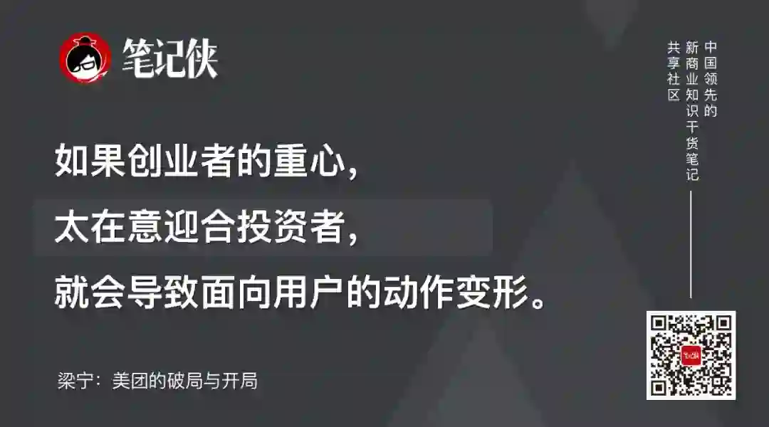 如果创业者的重心,太在意迎合投资者,就会导致面向用户的动作变形。这是个很要命的事,而当事人还很容易把它自我合理化。