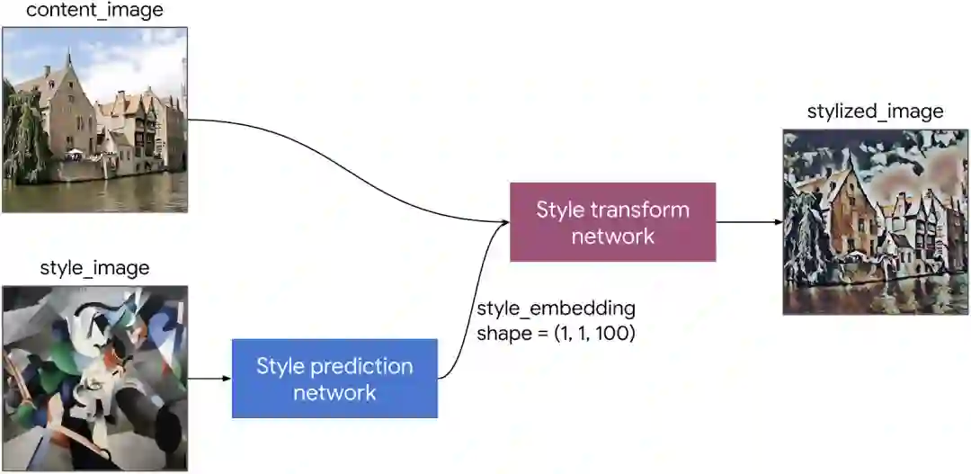 另一种可能提升性能的方式是:缓存风格预测网络的结果,如果您的移动应用仅计划支持一组固定的风格图像。这将进一步缩小您的应用,无需再包含风格预测网络(占总网络大小的 91%)。这是此流程分为两个模型,而不仅仅是一个模型的主要原因。