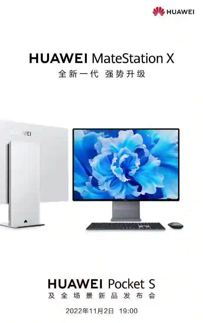 今日,华为终端官方宣布新一代 MateStation X 一体机将于 11 月 2 日发布,见证智慧一体机全新升级。从官方公布海报来看,新一代 MateStation X 一体机采用四边等窄屏幕,外观延续了上一代的简约设计,看起来质感十足。此外,该一体机还可以配备华为无线键盘和蓝牙鼠标使用。目前,官方还未公布这款新品的配置信息,有爆料称将配备英特尔 i9-12900H 处理器、LPDDR5-5200 内存和 PCIe 4.0 SSD。