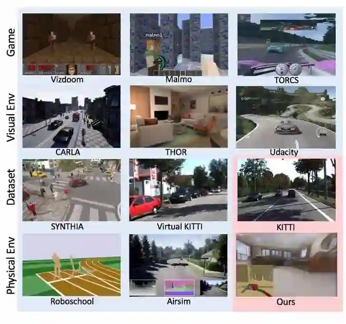 2016 年起,伴随深度强化学习的兴起,计算机视觉领域的研究重心从静态图像处理开始转向动态视觉控制。大量的仿真模拟平台涌现而出 (例如虚拟驾驶平台 Carla, 虚拟无人机平台 Airsim)。